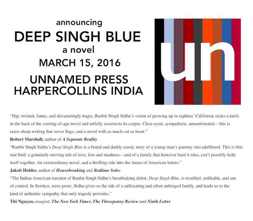 A huge thank you to Joanna Luloff, editor at the wonderful mag Memorious, for picking DEEP SINGH BLUE as one of her most anticipated books for 2016. See the full list here.